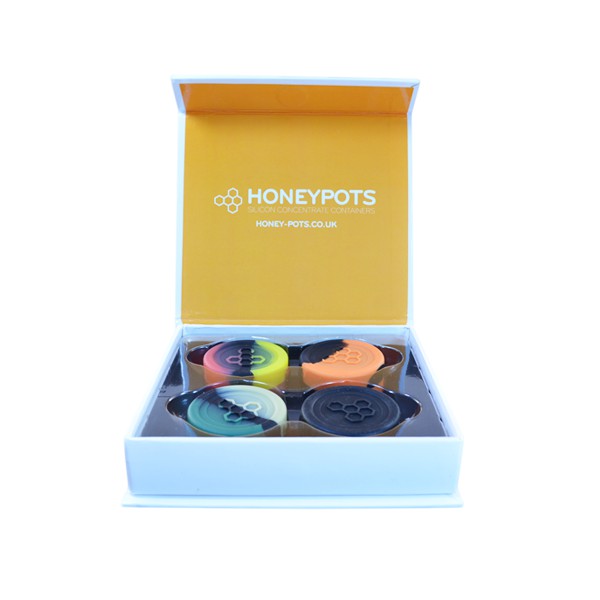 - Honey Pots concentrate containers are made of Platinum Cured, Medical Grade silicone. Perfect for storing the stickiest extracts, a simple squeeze and release is all you need to snap the container away from the concentrate within